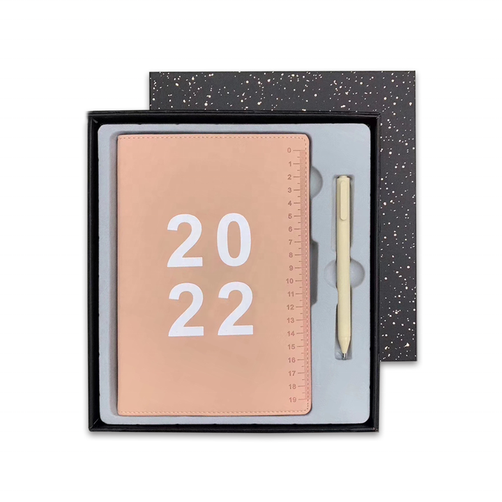 2022 A5ไดอารี่ที่กำหนดเองหนังวารสารโน๊ตบุ๊คชุดของขวัญที่มีปากกาในกล่อง